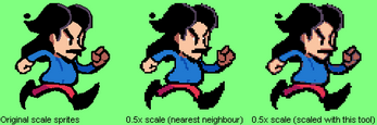 Batch Palette Scaler is a Java-based tool to scale graphics while applying a palette to them. It can be used to create sprites by scaling down hand-drawn art and applying a global palette to them or to scale down existing sprites, each confining to its own palette.